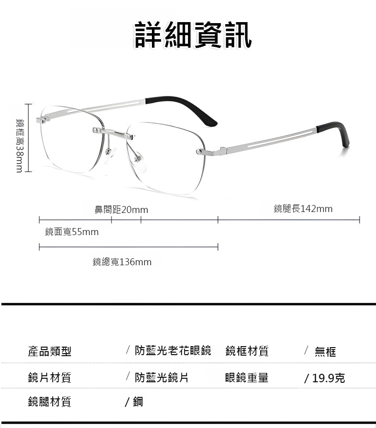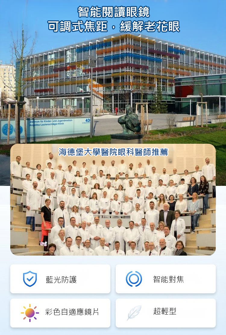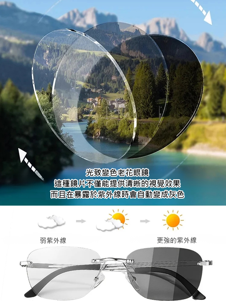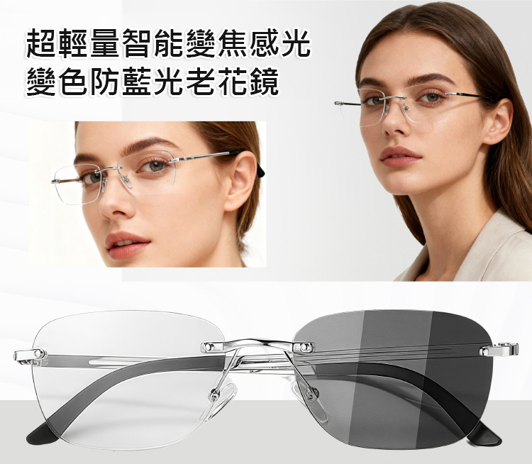 超輕量智慧變焦感光變色防藍光老花眼鏡